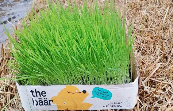 Oats grass grown with compost in cardboard boxes.